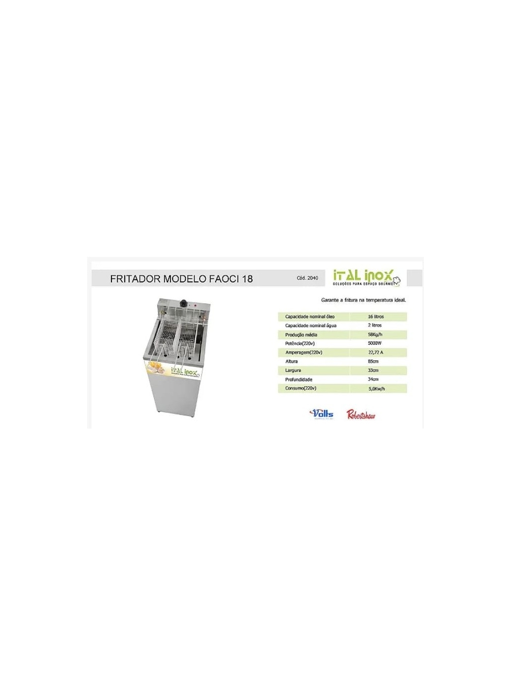 FRITADEIRA ELÉTRICA DE GABINETE 5.000W - FAOCI18 - ITALINOX