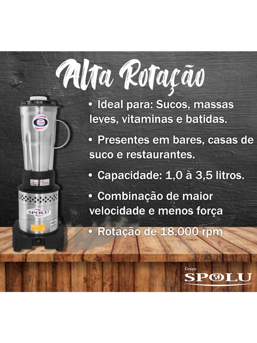 LIQUIDIFICADOR INDUSTRIAL BAIXA ROTAÇÃO 4 LITROS - BIVOLT - SPOLU
